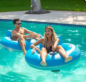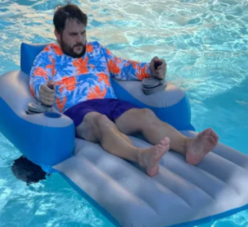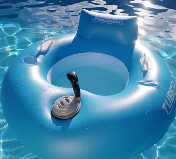 Svar: Pooltuben är utrustad med en elektrisk propellermotor som styrs via ett enkelt handtag.